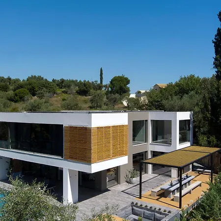 Deze 3-slaapkamer La Fortuna Villa - Award Winning Luxury Villa Close To Corfu Town ligt op afstand van 7 km van het Paleis Achilleion en biedt gasten de mogelijkheid om van hun avond te genieten op een terras met een zwembad.